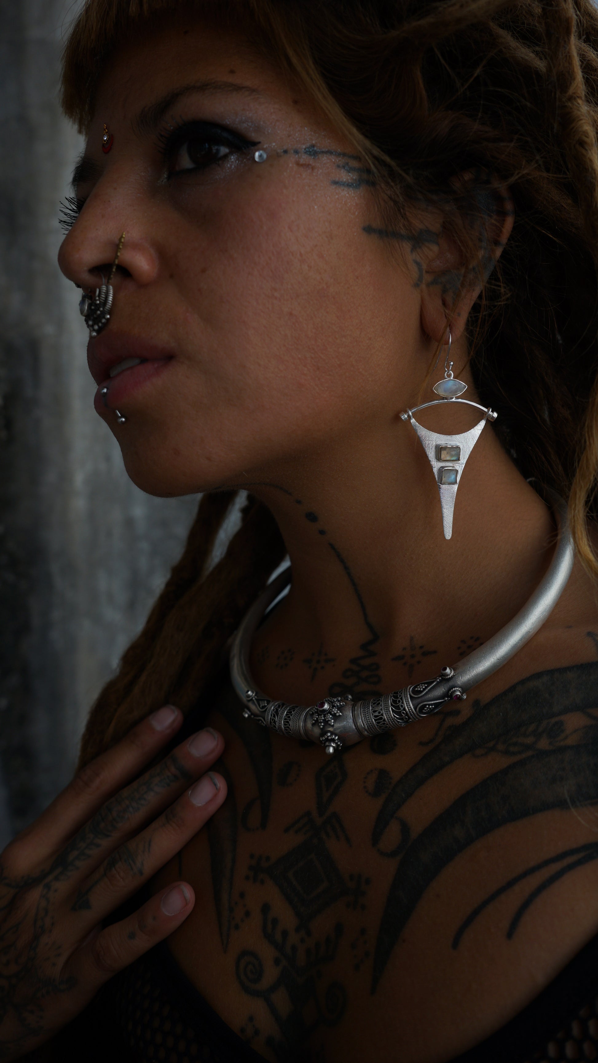 Embrace the magic of the moon with our Saral Silver Earrings. Handcrafted from 92.5 silver and adorned with moon stones, these earrings will add a tribal touch to any outfit. Channel the power of the moon and elevate your style with Saral.